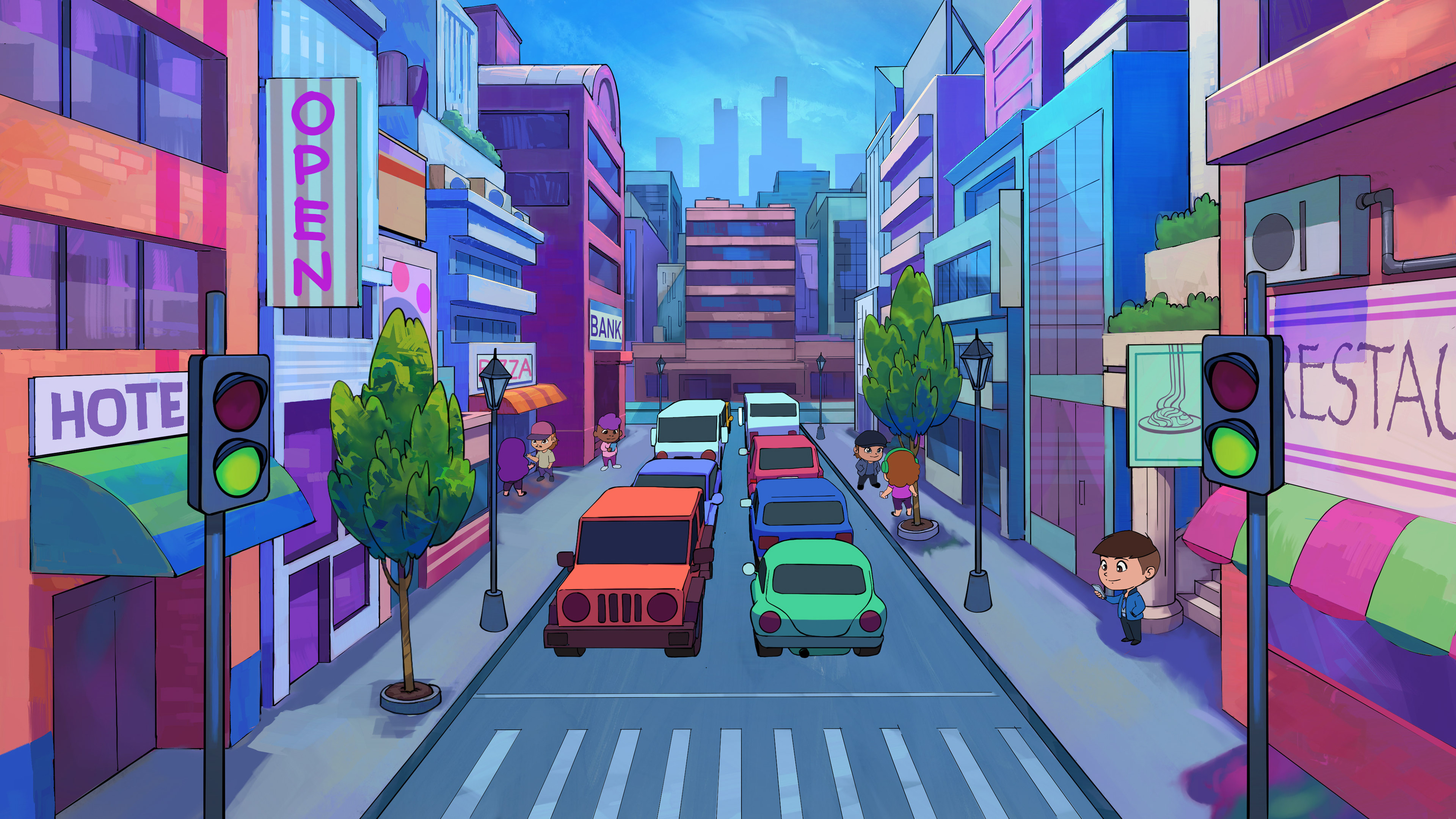 Backgrounds were created separately and later composited in Adobe After Effects. To enhance visual depth, we applied 3D rotation and layered camera movement, giving the final video a more cinematic and immersive feel. This combination of 2D animation and 3D compositing added realism and depth to the scenes while maintaining a stylized, vibrant look.